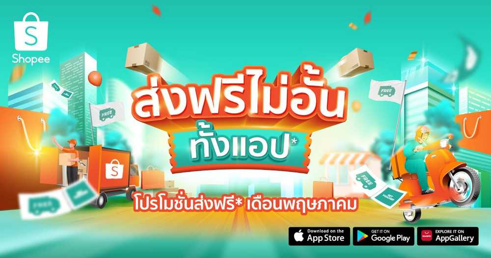 นักช้อปสามารถติดตามรายละเอียดเพิ่มเติมของแคมเปญ “Shopee ส่งฟรีไม่อั้น ทั้งแอป*” ได้ตลอดทั้งเดือนพฤษภาคม 2566 พร้อมพบกับสิทธิพิเศษจาก ShopeePay อีกคับคั่ง ติดตามรายละเอียดเพิ่มเติมได้ที่https://shopee.co.th/m/free-shipping