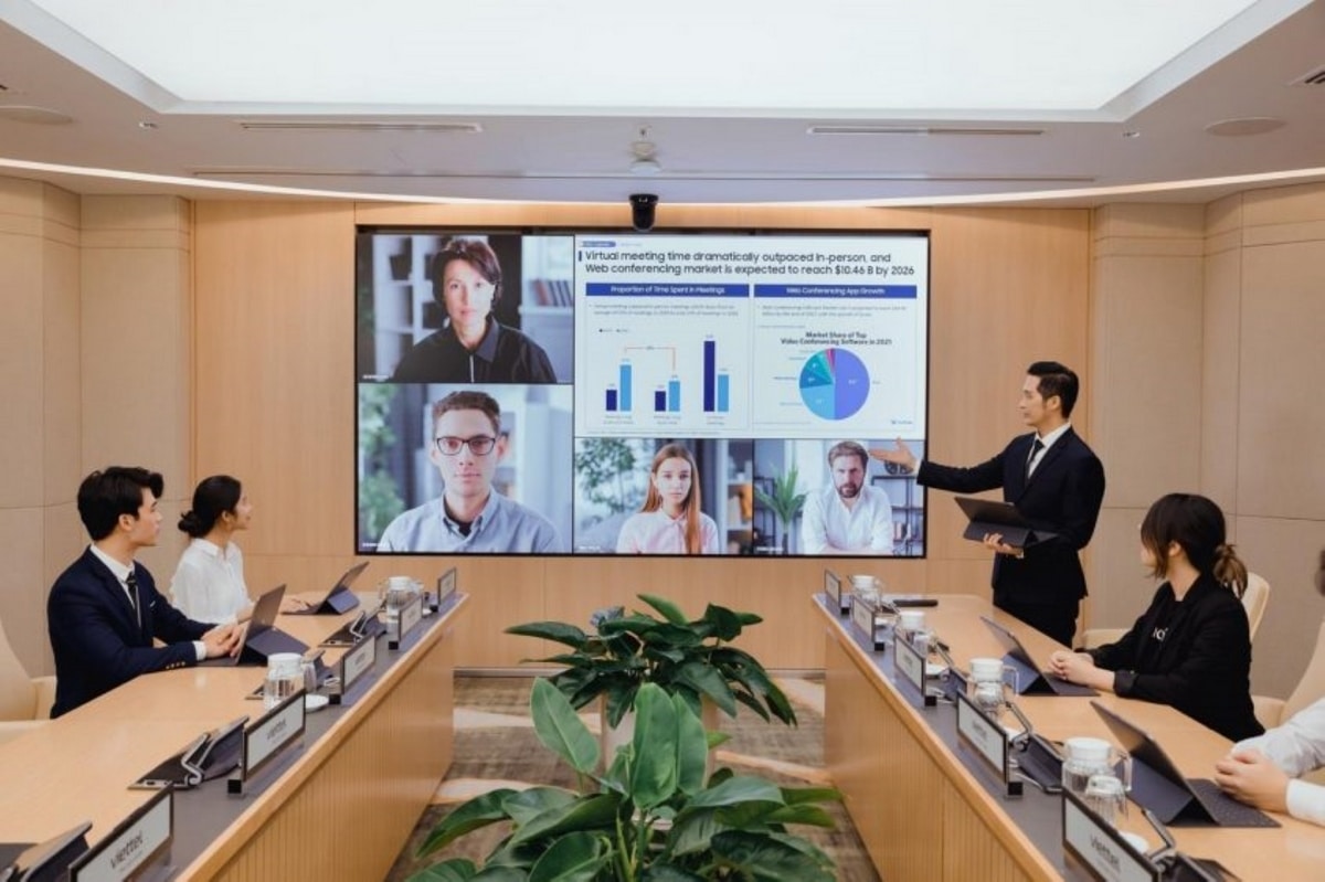 Audio-Technica ได้จัดแสดงการประชุมในพื้นที่สำนักงานที่สมจริง โดยการใช้โซลูชั่นภาพของซัมซุงที่มีขนาดให้เลือกได้ตั้งแต่ 40 ถึง 49 นิ้ว ร่วมกับโซลูชั่นเพื่อการประชุมทางไกลผ่านวีดีโอของบริษัทภาพและเสียงสัญชาติญี่ปุ่น