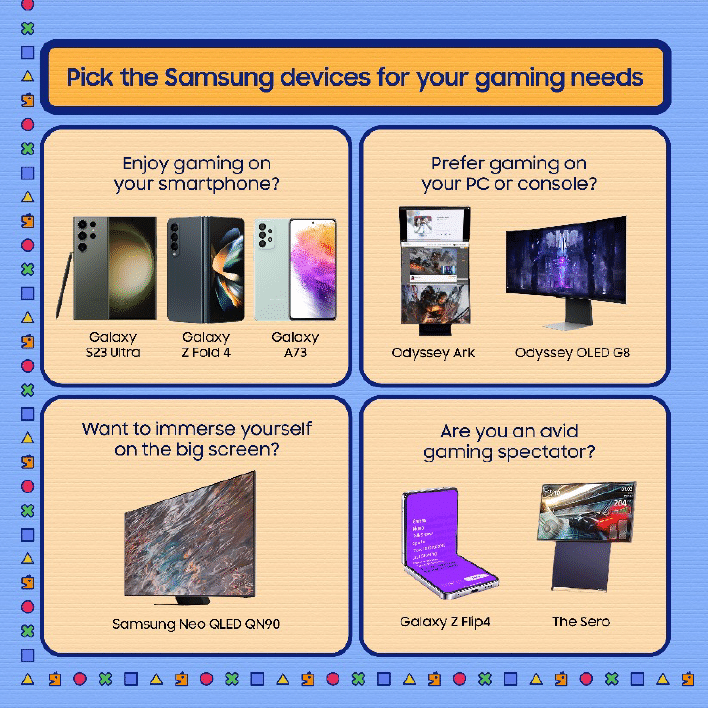 อีกด้านหนึ่ง ผู้ที่ชอบชมเนื้อหาเกี่ยวกับเกมสามารถเลือกใช้ Samsung Galaxy Z Flip4, Smart Monitor M8 และ The Sero