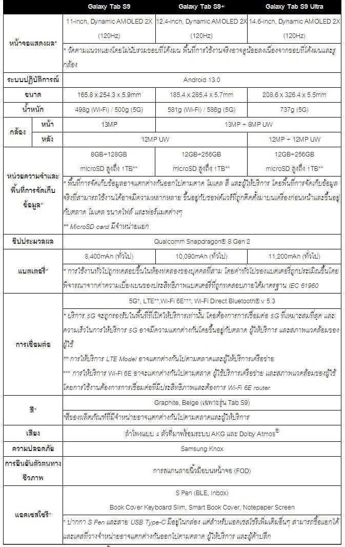 สามารถอ่านข้อมูลเพิ่มเติมเกี่ยวกับ Galaxy Tab S9 series ได้ที่ www.samsungmobilepress.com, news.samsung.com/global หรือ https://www.samsung.com/galaxy-tab