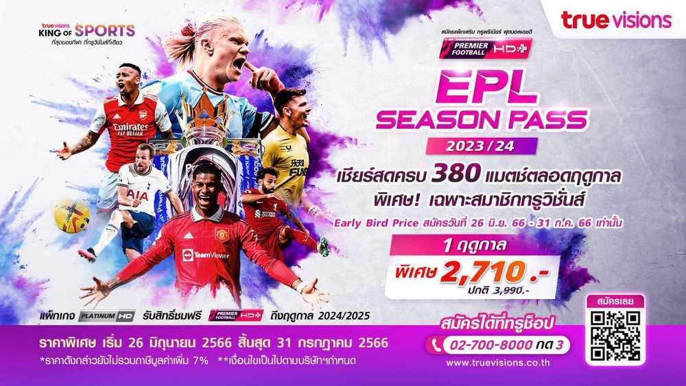 - แพ็กเกจ EPL SEASON PASS 2023/24” EARLY BIRD คลิก https://bit.ly/460sn7v