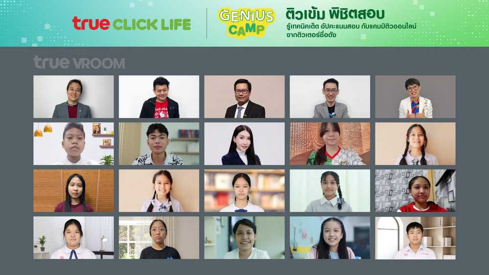กรุงเทพฯ 3 กุมภาพันธ์ 2566 – ทรู คลิกไลฟ์ โดย นายอนุสรณ์ ดำรงธรรม (แถวบน – กลาง) ผู้ช่วยผู้อำนวยการฝ่ายวิชาการและการศึกษา บมจ.ทรู คอร์ปอเรชั่น ตอกย้ำความเป็นผู้นำนวัตกรรมการเรียนรู้แบบครบวงจรสำหรับโรงเรียนเอกชน ด้วย 5 หลักสูตรคุณภาพ ได้แก่ เทคโนโลยีวิทยาการคำนวณ ภาษาอังกฤษ ภาษาจีน โรโบติกส์ และดนตรี จัดแคมป์ติวออนไลน์พิชิตข้อสอบ ผ่าน True VROOM ในกิจกรรม “True Click Life Genius Camp” ให้ความรู้จัดเต็มแก่นักเรียนชั้นประถมศึกษาปีที่ 6 และมัธยมศึกษาปีที่ 3 เพื่อเตรียมพร้อมก่อนสอบเลื่อนระดับชั้น จากติวเตอร์ชื่อดัง สถาบัน We By The Brain อาทิ ครูพี่เอ๋ คุณวิเศษ กี่สุขพันธ์ และครูพี่กอล์ฟ ชวลิต กุลกีรติการ วิชาคณิตศาสตร์ ครูพี่บิ๊ก ดร.ณัฐชัย เก่งพิพัฒน์ วิชาวิทยาศาสตร์ พร้อมกับครูพี่ยู คุณสุรเชษฐ์ พิชิตพงศ์เผ่า วิชาภาษาไทย ร่วมด้วยติวเตอร์ขวัญใจเด็ก ๆ อย่าง ครูพี่เลดี้เก๋เก๋ คุณสุวคนธ์ อินป้อง วิชาภาษาอังกฤษ ที่มาแชร์เทคนิคอัดแน่นความรู้ในการทำข้อสอบ เพิ่มคะแนนสอบปลายภาคกันแบบง่ายๆ เตรียมความพร้อมเสริมความมั่นใจก่อนลงสนามสอบ ซึ่งบรรยากาศเต็มไปด้วยความสนุกสนานตลอดการเรียน โดยมีน้องๆ กว่า 4,500 คนทั่วประเทศ ให้การตอบรับและสนใจเข้าร่วมกิจกรรมเป็นอย่างดี ซึ่งหลังจบติวเข้มแล้ว ยังมีการทำแบบทดสอบเพื่อวัดความรู้ พร้อมชิงทุนการศึกษาอีกด้วย