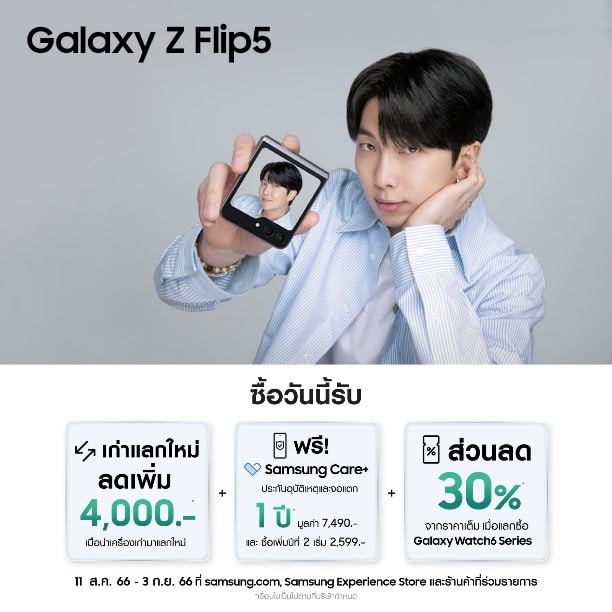 *เงื่อนไขเป็นไปตามที่บริษัทกำหนด ข้อมูลเพิ่มเติม https://smsng.store/Galaxy_Z_Flip5