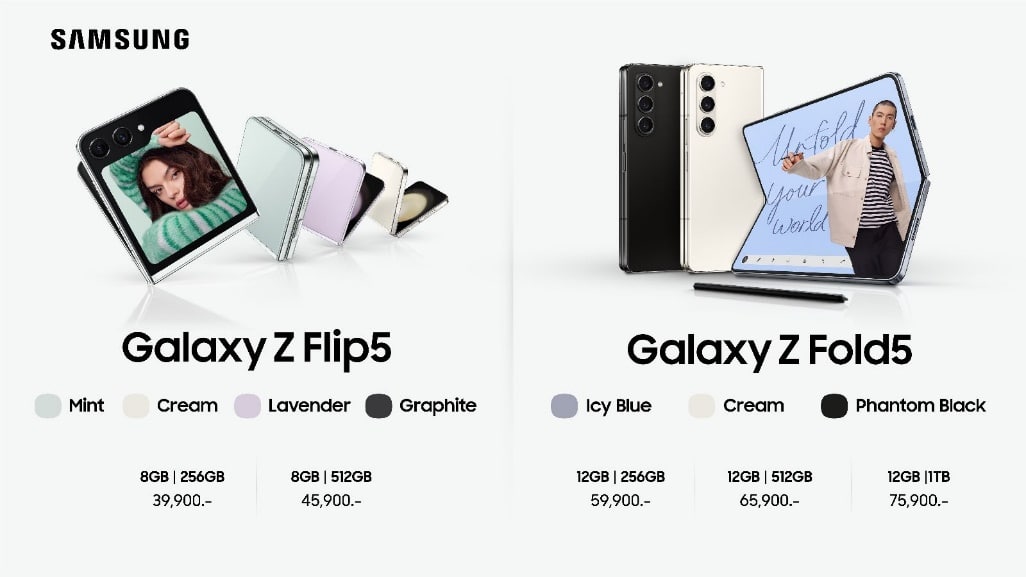 โดย Galaxy Z Flip5 มีความโดดเด่นและได้รับความสนใจเป็นอย่างมาก เนื่องจากมีดีไซน์ที่สวยงามแบบแฟชั่นไอเท็มประสิทธิภาพสูง และยังพกพาง่าย โดยมีจอนอกที่ใหญ่ขึ้นจนเป็นไฮไลท์เด็ด ที่มีขนาดใหญ่ถึง 3.4 นิ้ว ทำให้ทุกคนสามารถทำกิจกรรมต่างๆ ได้มีประสิทธิภาพยิ่งกว่าเดิม โดยสามารถใช้งานจอกจอนอกได้ทุกแอปพลิเคชั่น ไม่ว่าจะเป็นการถ่ายภาพ การตอบแชท ดูหนัง ฟังเพลง หรือการใช้ Google Map เรียกได้ว่าจอใหญ่ใช้ได้จริง! นอกจากนี้ Galaxy Z Flip5 ยังมาพร้อมกับ Accessories สุดพิเศษ อย่าง Flip Suit Case (NFC) ที่จะช่วยให้การตกแต่งสมาร์ทโฟนอันโปรดของทุกคนสนุกและสร้างสรรค์ โชว์ความเป็นตัวเองได้มากกว่าเดิม ในส่วนของ Galaxy Z Fold5 ก็มาพร้อมกับจอที่ใหญ่แต่น้ำหนักเบาและบางลงกว่าเดิม จอที่พับปิดสนิทกว่าเดิม และแบตเตอรี่ที่อึดขึ้น ใช้งานได้ลื่นไหลไม่มีสะดุด พิเศษกว่าเดิมด้วย S Pen Fold Edition ใหม่ที่เล็กกระทัดรัดกว่าเดิมแต่จับถนัดมือมากขึ้น ทำให้การจดบันทึกและขีดเขียนไอเดียต่างๆ เป็นเรื่องที่ทำได้ง่าย โดยทั้ง 2 รุ่นนี้มากับขุมพลังจากชิปเซ็ตที่ดีที่สุดอย่าง Snapdragon® 8 Gen 2 ทั้งยังรองรับมาตรฐาน IPX8 กระจก Corning® Gorilla® Glass Victus®2 และบานพับแบบ Flex Hinge ที่จะช่วยให้ทุกการใช้งานสมูท แข็งแรง ทนทานและปลอดภัยกว่าเดิม หมดปัญหากวนใจ