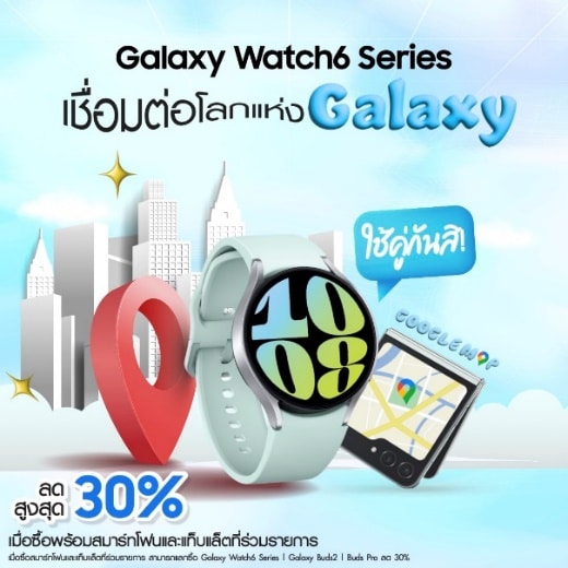 - ส่วนลด 30% เพื่อแลกซื้อ Galaxy Watch6 Series เมื่อซื้อพร้อมกัน