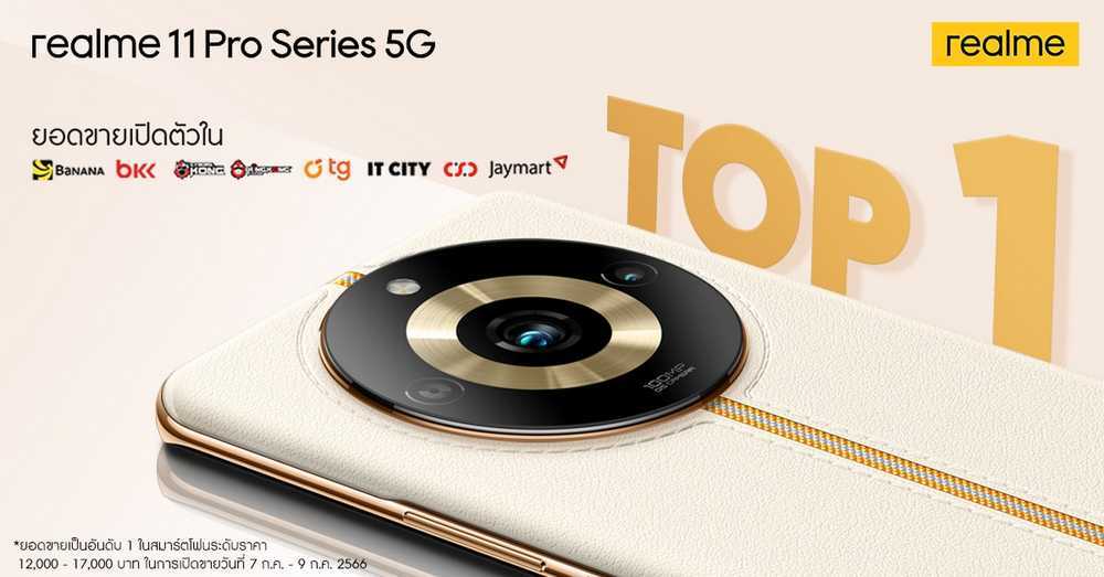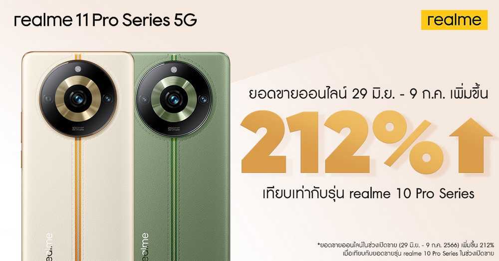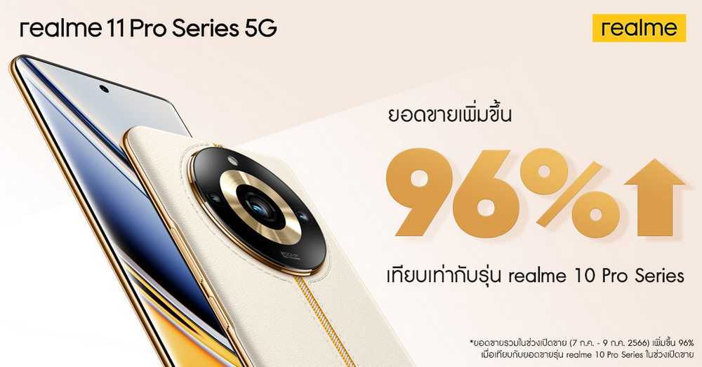 กรุงเทพฯ 11 กรกฏาคม 2566 – หลังจากเปิดตัว realme 11 Pro Series 5G ซูมเหนือระดับ อย่างเป็นทางการในประเทศไทยไปเมื่อวันที่ 29 มิถุนายนก็เรียกเสียงฮือฮาได้ทั่วประเทศ ไม่เพียงแต่ความตื่นตาตื่นใจกับงานเปิดตัวอันยิ่งใหญ่ แต่ยังรวมไปถึงประสิทธิภาพของ realme 11 Pro Seires 5G ทั้ง 2 รุ่นไม่ว่าจะเป็น realme 11 Pro 5G และ realme 11 Pro+ 5G ที่ให้มาอย่างครบครัน พร้อมสร้างปรากฏการณ์ยอดขายถล่มทลายนับตั้งแต่ที่ได้เริ่มเปิดพรีออเดอร์ โดยเมื่อวันที่ 7 กรกฎาคมที่ผ่านมา เรียลมีได้จัดกิจกรรม First Sale Event ต้อนรับการเปิดจำหน่ายวันแรกกับช่องทางตัวแทนจำหน่ายไม่ว่าจะเป็น BaNANA , BKK, Kingkong Phone, TG , IT CITY, Jaymart และ realme Brand Shop รวมถึงศูนย์บริการสาขามาร์เก็ตวิลเลจ สุวรรณภูมิ ซึ่งได้รับกระแสตอบรับอย่างท่วมท้น โดยในช่วงวันที่ 7 กรกฏาคม – 9 กรกฏาคม realme 11 Pro Series มียอดขายเป็นอันดับ 1 ในทุกช่องทางดังกล่าวสำหรับสมาร์ตโฟนช่วงระดับราคา 12,000-17,000 บาทและยังมียอดขายสูงขึ้น 96% เมื่อเทียบกับ realme 10 Pro Series