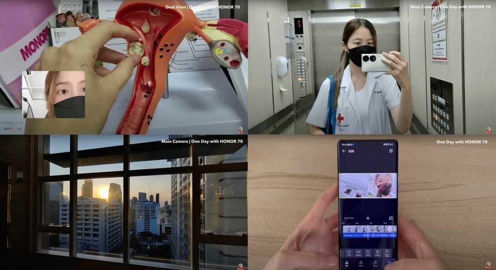 “เชื่อว่าทุกโมเมนต์เกิดขึ้นครั้งเดียวในชีวิต และไม่มีทางเกิดซ้ำ ถึงแม้จะเป็นวันทำงานธรรมดาๆ มันก็ยังมีความพิเศษอยู่ในตัว ฟรังจึงอยากพาทุกคนร่วมสัมผัสกับชีวิตแพทย์ฝึกหัดใน 1 วัน รับบทไกด์นำทัวร์ในแผนกสูตินรีเวชทั้งที ผู้ชมก็ต้องเห็นหน้าตอนเล่าแนะนำอุปกรณ์ในห้องตรวจผู้ป่วยนอก ต้องขอบคุณโหมด Dual View ใน HONOR 70 ที่ทำให้อัดวิดีโอจากกล้องหน้าและกล้องหลังได้พร้อมกัน ทำให้ประหยัดเวลามาก ไม่ต้องถ่ายกล้องหลังที กล้องหน้าทีเหมือนเมื่อก่อน เกือบตลอดวันทำงานของฟรังต้องเดินใอาคารตลอด แสงไฟก็อึมครึม แต่ไม่ทำให้วิดีโอหมองเลย หน้าสว่างใสสุดๆ ด้วยโหมด Beauty ที่ช่วยปรับสภาพผิวให้ออร่าอัตโนมัติ ในขณะที่กล้องหลังความละเอียดถึง 54MP ถ่าย Vlog ได้ทุกสถานการณ์ ไม่ว่าจะในที่แสงน้อยหรือย้อนแสงก็หายห่วง อีกทั้งยังสามารถตัดต่อและตกแต่งวิดีโอได้ในเครื่อง โดยไม่ต้องใช้แอปอื่น พร้อมลงโซเชียลได้ทันที เรียกได้ว่า HONOR 70 เครื่องเดียวก็คือครบจบสำหรับสายทำคอนเทนต์” Vlog 1 วันทำงานธรรมดาๆ ที่น่าจดจำของ LaohaiFrung ส่งต่อแรงบันดาลใจให้ทุกคนลองเปลี่ยนวันธรรมดาให้น่าจดจำยิ่งขึ้นผ่านการบันทึกภาพและวิดีโอ