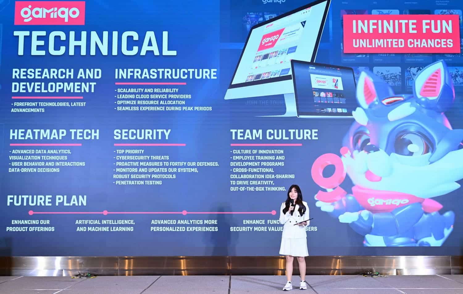 นอกจากนี้ Gamiqo ยังได้รับการสนับสนุนจากทางภาครัฐอย่าง กรมการปกครอง ในการลงทะเบียนด้วยระบบ Digital ID เพื่อพิสูจน์และยืนยันตัวตนทางดิจิทัล จึงทำให้ผู้ใช้งานสามารถเชื่อมั่นได้ถึงความปลอดภัยเมื่อใช้บริการผ่านแพลตฟอร์มนี้ และยังร่วมกับสำนักงานคณะกรรมการดิจิทัลเพื่อเศรษฐกิจและสังคมแห่งชาติ วางแผนจัดตั้งโครงการเกี่ยวกับอุตสาหกรรมเกมในประเทศไทย เพื่อให้นักจัดการแข่งขัน, คอนเทนต์คริเอเตอร์, ผู้ให้บริการเกมทั้งในและต่างประเทศ ได้มีพื้นที่ในการสื่อสารและเจาะกลุ่มเป้าหมายได้อย่างทั่วถึง ในการรองรับอุตสาหกรรมเกมโดยเฉพาะ เพื่อสร้างโอกาสทางธุรกิจและผลักดันเศรษฐกิจของประเทศไทยในระยะยาว ซึ่งเป้าหมายสำคัญของเรานอกเหนือจากการพัฒนาอุตสาหกรรมเกมด้าน Esports ของไทย เข้าสู่ตลาดเซาท์อีสเอเชียภายในสิ้นปี 2567 เรายังต้องการผลักดันอาชีพนำร่องการสร้างอาชีพตลาดแรงงานในอุตสาหกรรมเกม และอีสปอร์ตเพื่อมุ่งสู่ตลาดสากลของโลกต่อไปค่ะ” คุณศศิมาภรณ์ กล่าวทิ้งท้าย