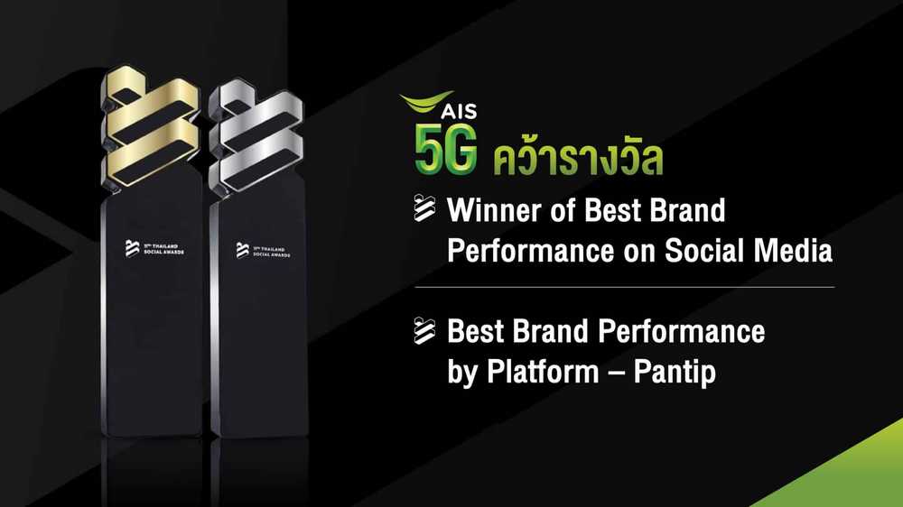 AIS ยังคงยืนหนึ่งในฐานะแบรนด์ที่ทำผลงานบนช่องทางโซเชียลมีเดียได้อย่างยอดเยี่ยม ด้วยการคว้าถึง 2 รางวัล จากเวที THAILAND SOCIAL AWARDS 2023 ประกอบไปด้วย รางวัล Winner of Best Brand Performance on Social Media สาขากลุ่มธุรกิจโทรคมนาคม 6 ปีซ้อน และ รางวัล Best Brand Performance by Platform – Pantip ตอกย้ำความเชื่อและวิสัยทัศน์ของ AIS ที่มุ่งมั่นตั้งใจในการพัฒนาโครงข่ายสื่อสาร 5G ผ่านบริการดิจิทัลที่ตอบโจทย์กับดิจิทัลไลฟ์สไตล์ รวมถึงยังเป็นแบรนด์ที่พร้อมช่วยเหลือดูแลลูกค้าในทุกช่องทาง โดยเฉพาะในช่องทางโซเชียลมีเดียที่วันนี้ AIS ไม่ได้มองเป็นเพียงแค่ช่องทางในการสื่อสารกับลูกค้า แต่เป็นพื้นที่ในการรับฟังเพื่อนำข้อมูลไปปรับปรุงพัฒนาคุณภาพบริการให้ดีมากยิ่งขึ้น