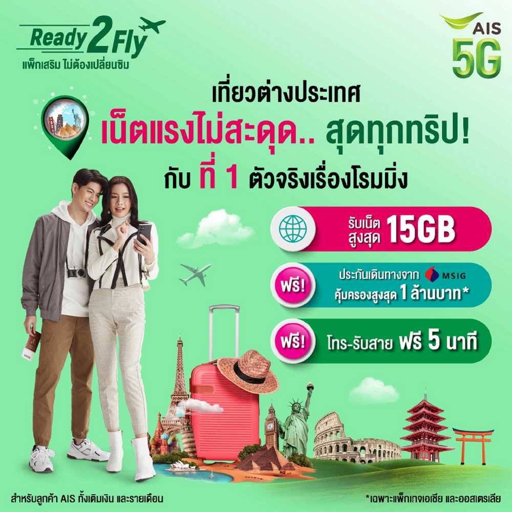 AIS 5G ย้ำความเป็นผู้นำด้านการให้บริการข้ามแดนอัตโนมัติหรือ โรมมิ่ง ที่มีเครือข่ายพันธมิตรครอบคลุมบริการ 5G โรมมิ่ง มากเป็นอันดับ 1 ของโลก ครอบคลุมพื้นที่การใช้งานกว่า 90 ประเทศ และมุ่งตอบโจทย์ไลฟ์สไตล์การเดินทางไม่ว่าจะเป็นการเดินทางและการพักผ่อนของลูกค้าแบบเหนือระดับให้ได้รับความสะดวกสบายทุกการสื่อสาร ทั้งโทรและเน็ตเต็มสปีด พร้อมสิทธิพิเศษมากมายผ่านแพ็กโรมมิ่งใหม่ล่าสุด กับ Ready2Fly Ultimate และ Ready2Fly Plus ครั้งแรกของแพ็กโรมมิ่งที่รวมทั้งบริการโทรและเน็ตอยู่ในแพ็กเดียวกัน อำนวยความสะดวกให้กับลูกค้าให้ติดต่องานราบรื่น สื่อสารไม่สะดุด อุ่นใจตลอดทริปการเดินทางด้วยประสบการณ์สุดพรีเมียมจากสิทธิพิเศษมากมาย ครอบคลุมกว่า 180 ประเทศทั่วโลก