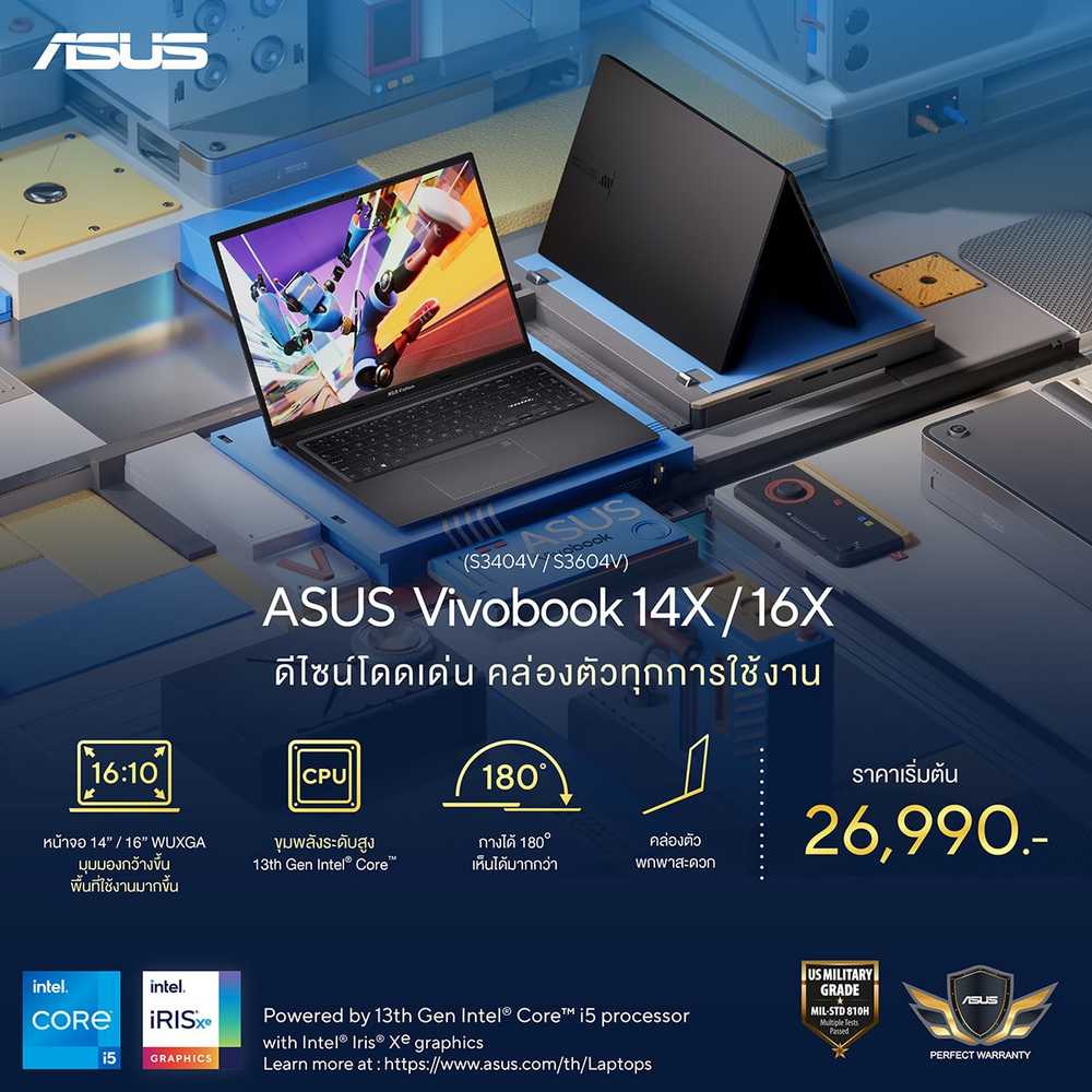 ASUS Vivobook 14X และ 16X วางจำหน่ายแล้วในราคาเริ่มต้น 26,990 บาท พร้อมการรับประกันตัวเครื่อง 2 ปีเต็ม ครอบคลุม 83 ประเทศทั่วโลก และการรับประกันอุบัติเหตุ (Perfect Warranty) 1 ปีแรก พร้อมด้วย Windows 11 และ Pre-installed Office Home & Student 2021 ติดตั้งพร้อมใช้งาน