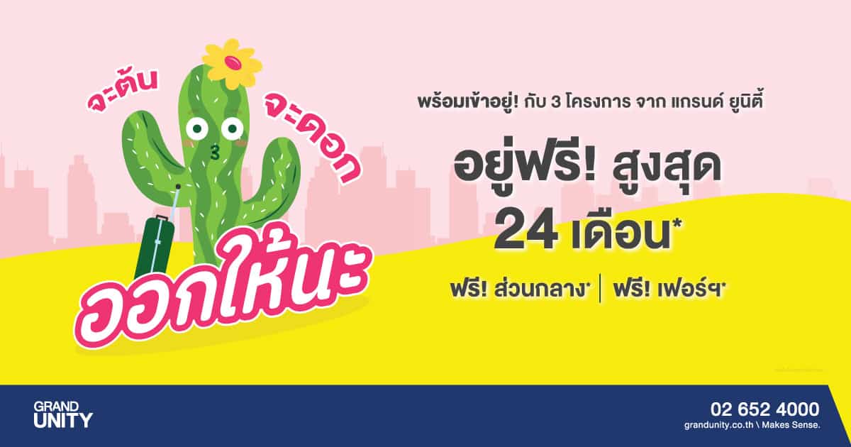 แกรนด์ ยูนิตี้ ขานรับคลายล็อกดาวน์ ส่งโปร “จะต้น จะดอก ออกให้นะ” อยู่ฟรีทันที! สูงสุด 24 เดือน* กับ 3 คอนโดใกล้รถไฟฟ้า วันนี้ – 30 ธันวาคม 2564by BangkokStyle21/10/2021PR News