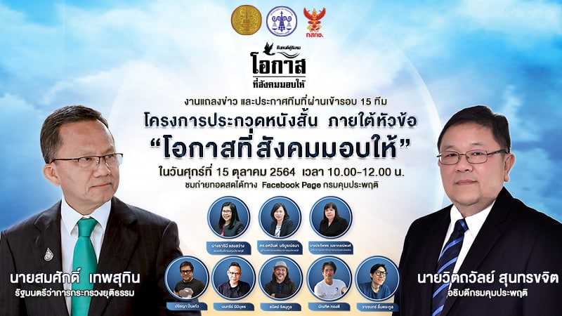 กรมคุมประพฤติ จัดงานแถลงข่าว โครงการประกวดหนังสั้น “โอกาสที่สังคมมอบให้” ชวนลุ้นหนังสั้นโดนใจ ผ่านเข้ารอบ 15 ทีมสุดท้ายby BangkokStyle09/10/2021PR News