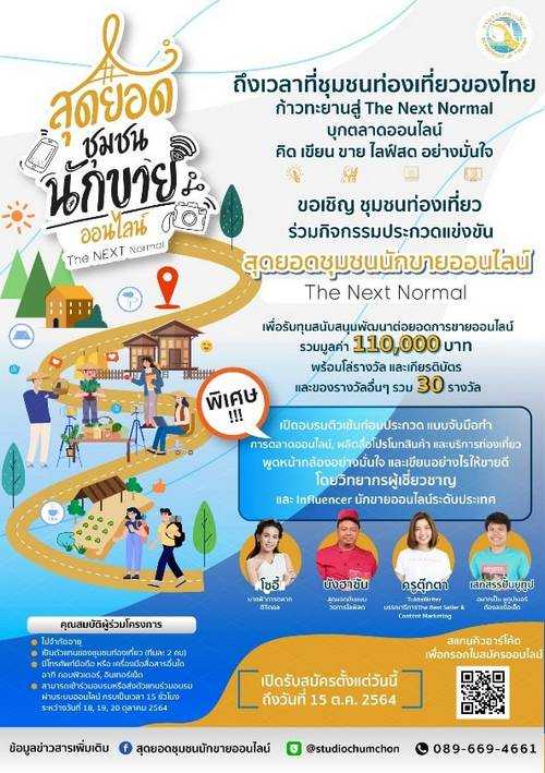 กรมการท่องเที่ยว ชวนชุมชนท่องเที่ยวร่วมกิจกรรม“ประกวดสุดยอดชุมชนนักขายออนไลน์”ชิงเงินรางวัลรวม110,000บาทby BangkokStyle08/10/2021PR News