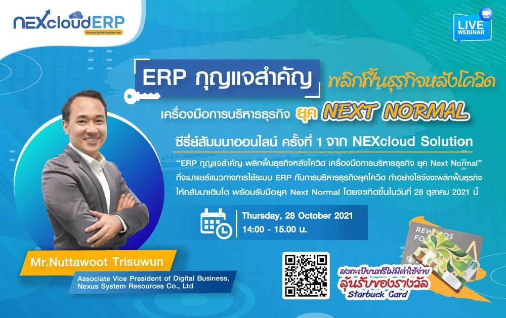 ขอเชิญร่วมงานสัมมนาออนไลน์ “ERP กุญแจสำคัญ พลิกฟื้นธุรกิจหลังโควิด เครื่องมือการบริหารธุรกิจยุค Next Normal” วันที่ 28 ตุลาคม 2021by BangkokStyle07/10/2021PR News