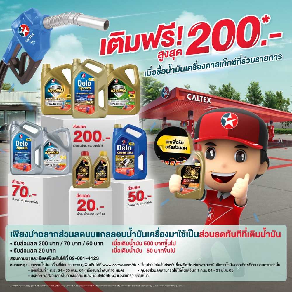 คาลเท็กซ์ จัดโปรฯ เด็ดรับคลายล็อก เพียงซื้อน้ำมันเครื่อง รับส่วนลดเติมน้ำมันฟรี สูงสุด 200 บาทby BangkokStyle05/10/2021PR News