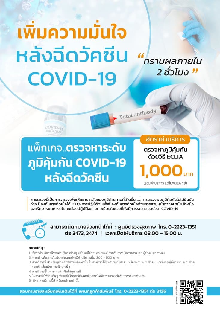 เพิ่มความมั่นใจหลังฉีดวัคซีน ด้วย..แพ็กเกจตรวจหาระดับภูมิคุ้มกัน COVID-19by BangkokStyle04/10/2021PR News