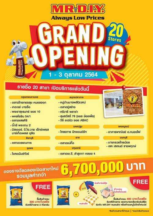 มิสเตอร์. ดี.ไอ.วาย. ฉลองเปิด 20 สาขาใหม่ทั่วประเทศในเดือนตุลาคมนี้ ยกทัพสินค้าอรรถประโยชน์ และโปรโมชั่นมากมาย พร้อมของขวัญสุดพิเศษby BangkokStyle27/09/2021PR News