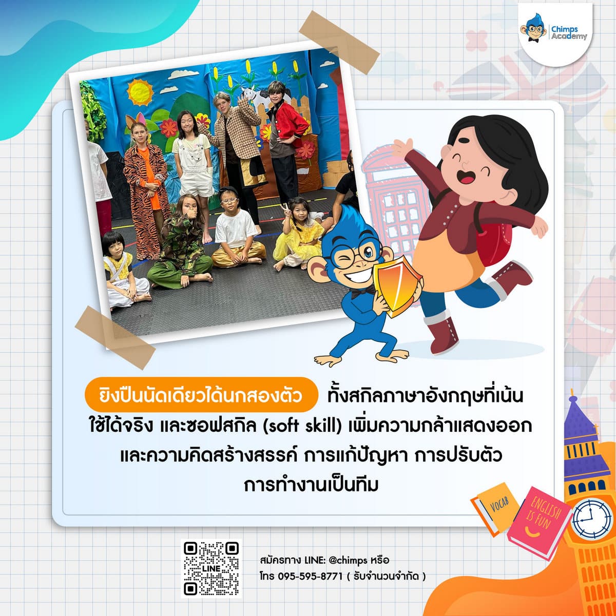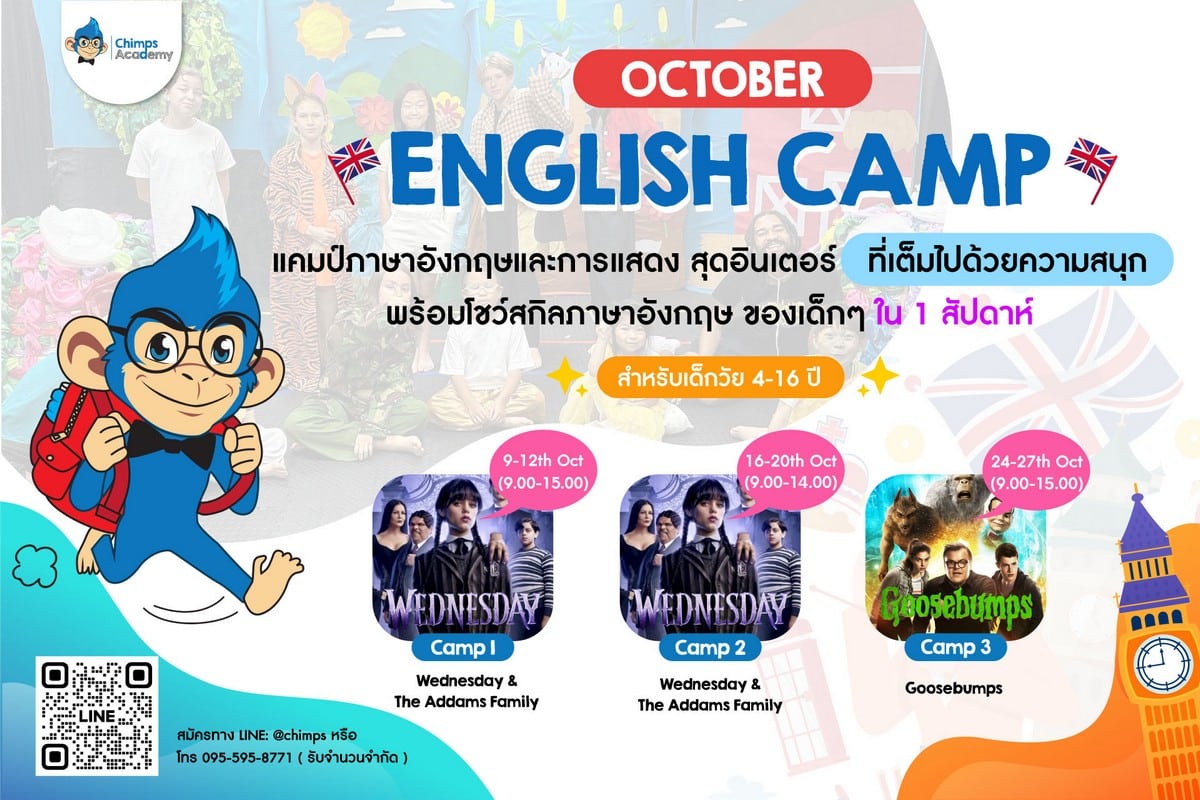 Chimps Academy เสนอค่ายเรียนภาษาอังกฤษและการแสดงที่เต็มไปด้วยความสนุกและแปลกใหม่ เพื่อเชิญชวนน้อง ๆ วัย 4-16 ปี มาร่วมเรียนรู้และสนุกสนานในค่ายที่น่าตื่นเต้นที่สุดในปีนี้!
