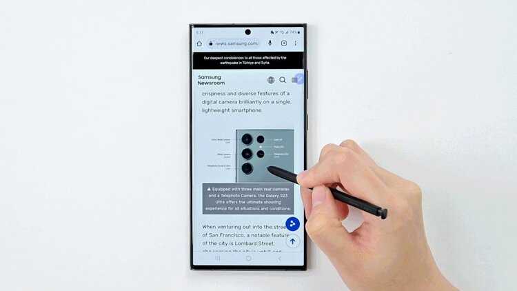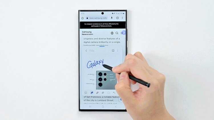 นอกจากนี้ Galaxy S23 Ultra ยังช่วยให้สร้างสรรค์และแบ่งปันความคิดหรือแนวคิดใหม่ๆ ได้ง่ายกว่าเดิมด้วย S Pen ที่พัฒนาไปอีกขั้นด้วยระบบปฏิบัติการ One Ui 5.1 ที่สามารถบันทึกข้อความไว้สำหรับการใช้งานภายหลัง และช่วยให้ใช้สิ่งที่ต้องการจากภาพนั้นได้อย่างง่ายดาย และระบบปฏิบัติการ One Ui 5.1 ยังสามารถแปลงข้อความที่เขียนด้วยลายมือเป็นตัวพิมพ์ได้ในแถบค้นหาในเว็บไซต์ เช่น กูเกิลและยูทูป ทำให้สามารถค้นหาได้ง่ายขึ้น ผู้ใช้อุปกรณ์กาแล็คซี่รุ่นอื่นๆ จะได้รับการอัพเดทระบบปฏิบัติการ One Ui 5.1 ในอนาคตเพื่อให้ผู้ใช้อุปกรณ์กาแล็คซี่ได้รับประสบการณ์ที่ดีที่สุดต่อไป