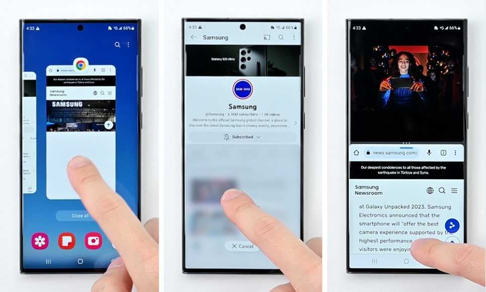 ผู้ใช้ Galaxy S23 Ultra จะได้สัมผัสกับฟังก์ชันมัลติทาสก์ที่ได้รับการพัฒนา พร้อมทั้งยังมีฟีเจอร์มัลติวินโดว์ที่ช่วยให้เปิดใช้งาน 2 แอปได้พร้อมกัน หรือสั่งเปิดหน้าต่างป๊อบอัพได้เหมือนใช้แลปทอป ช่วยให้ทำงานได้เร็วและมีประสิทธิภาพมากขึ้น