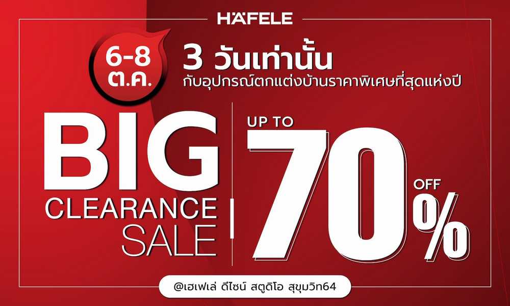HAFELE “BIG CLEARANCE SALE 2022” กลับมาแล้ว !! มหกรรมอุปกรณ์ตกแต่งบ้าน ลดครั้งใหญ่สูงสุด 70%28/09/2022PR News