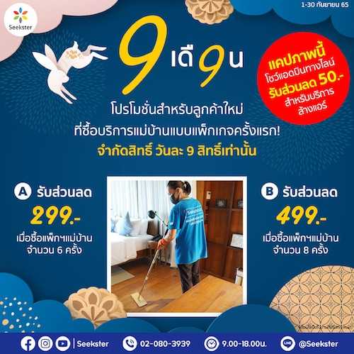 Seekster บริษัทแม่บ้านชั้นนำ เอาใจสายคลีน ลดสูงสุด 499 บาท เมื่อซื้อแพ็กเกจแม่บ้านทำความสะอาดรายเดือน16/09/2022PR News
