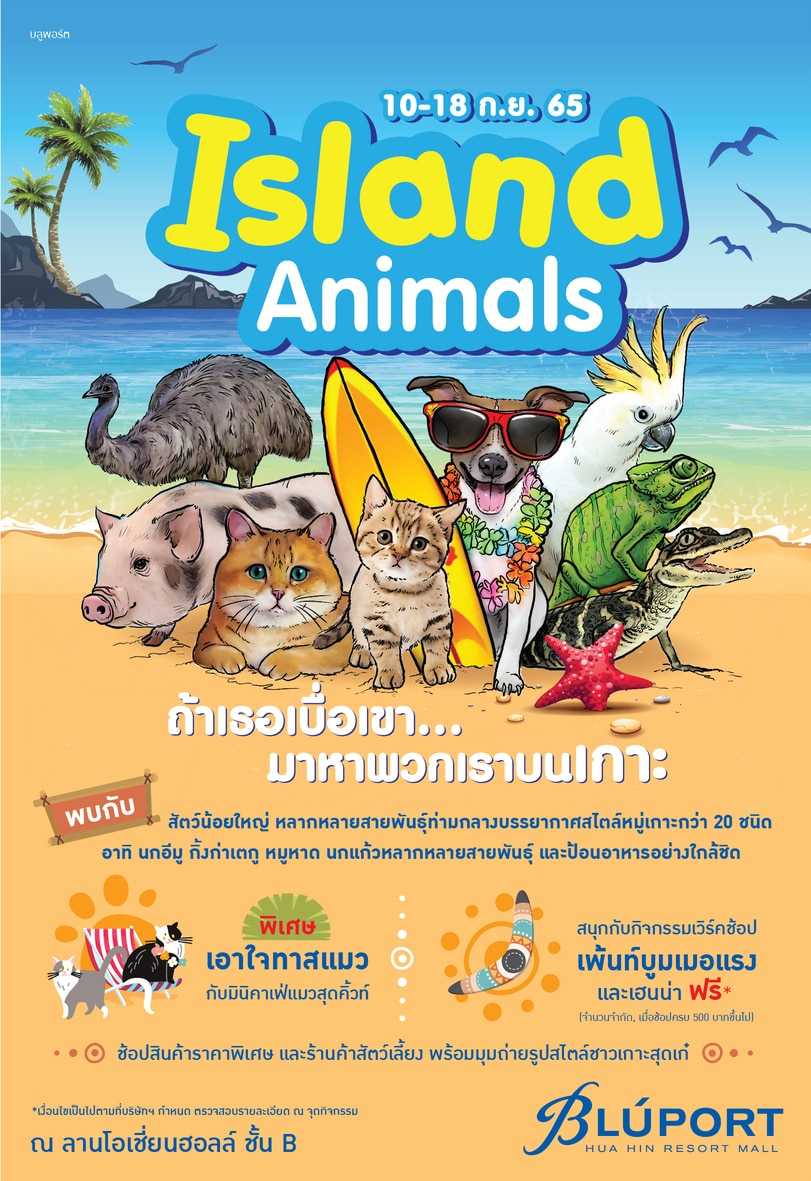 ถ้าเธอเบื่อเขา มาหาพวกเราบนเกาะ 10-18 ก.ย. 65 นี้ บลูพอร์ต หัวหิน ชวนชมสารพัดสัตว์น้อยใหญ่ท่ามกลางบรรยากาศสไตล์หมู่เกาะในงาน Island Animals ณ ลานโอเชี่ยนฮอลล์ ชั้น B13/09/2022PR News