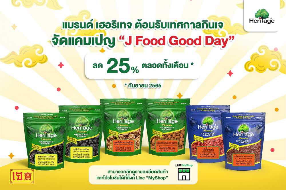แบรนด์เฮอริเทจ ต้อนรับเทศกาลกินเจ จัดแคมเปญ “J Food Good Day” ลดตลอดทั้งเดือน 25% ที่ Line My Shop07/09/2022PR News