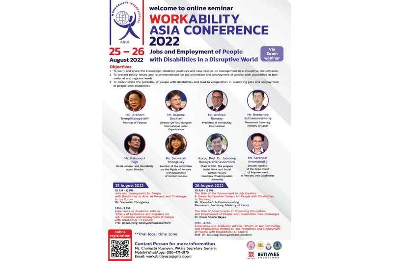 มูลนิธิพระมหาไถ่ฯ เจ้าภาพงาน Workability Asia Conference 2022 ในโครงการ “มหกรรมส่งเสริมอาชีพคนพิการเพื่อเท่าทันสถานการณ์โลกที่เปลี่ยนแปลง”05/09/2022PR News