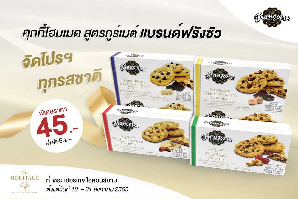 คุกกี้โฮมเมด สูตรกูร์เมต์ แบรนด์ฟรังซัว จัดโปรฯ ทุกรสชาติ ที่ เดอะ เฮอริเทจ ไอคอนสยาม ตั้งแต่วันที่ 10 – 31 สิงหาคม 256522/08/2022PR News