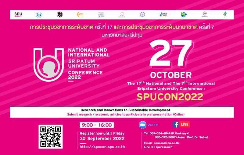 ม.ศรีปทุม ขอเชิญผู้สนใจ ร่วมส่งบทความวิจัยและบทความวิชาการ ในงาน SPUCON2022 ผ่าน ZOOM ONLINE15/08/2022PR News