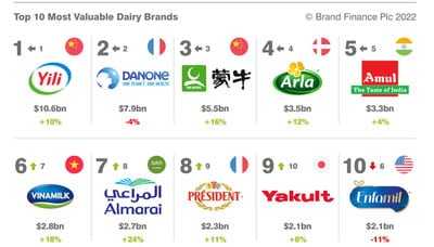 Yili ยังครองแชมป์แบรนด์ผลิตภัณฑ์นมมูลค่าสูงสุดในโลก จากรายงานปี 2565 ของแบรนด์ ไฟแนนซ์15/08/2022PR News