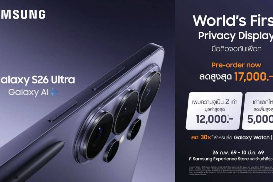 ใหม่! ซัมซุงเปิดสั่งจองล่วงหน้า Galaxy S26 Ultraครั้งแรกของโลก Privacy Display จอมือถือเพื่อความเป็นส่วนตัวby BangkokStyle26/02/2026PR News
