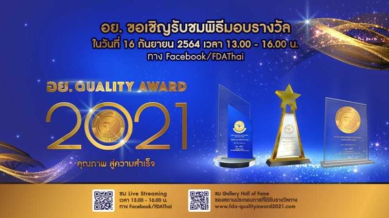 สำนักงานคณะกรรมการอาหารและยา เตรียมจัดงาน อย. ควอลิตี้ อวอร์ด ปี 2564 พิธีมอบรางวัลในรูปแบบเสมือนจริงผ่านระบบออนไลน์by BangkokStyle13/09/2021PR News