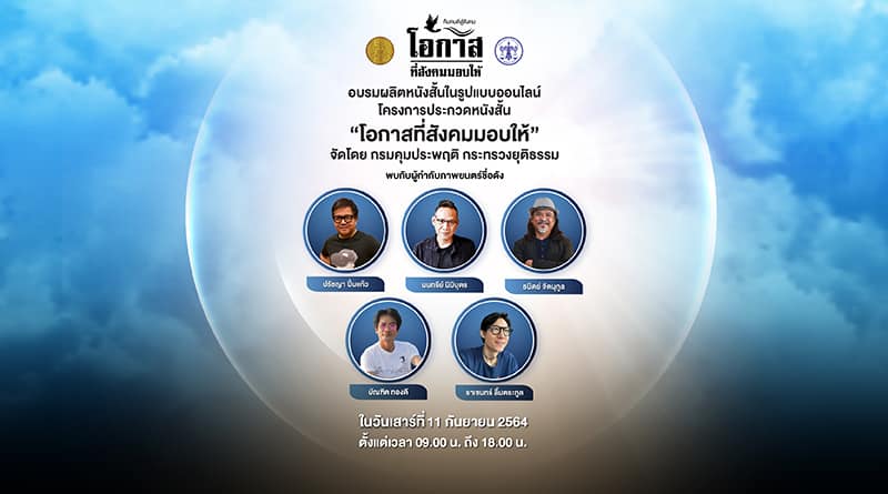 กรมคุมประพฤติเดินหน้าจัดอบรมออนไลน์ผลิตหนังสั้น โอกาสที่สังคมมอบให้ นำทีมผู้กำกับภาพยนตร์ชื่อดังสอนเทคนิค ดึงไอเดีย ผลิตผลงานคุณภาพสร้างสรรค์สังคมby BangkokStyle07/09/2021PR News
