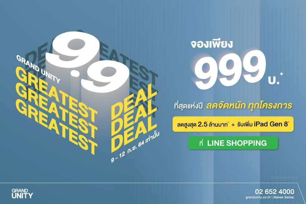 แกรนด์ ยูนิตี้ ส่งโปรฯ แห่งปี ‘9.9 THE GREATEST DEAL’ เจาะกลุ่มนักช้อปออนไลน์ จองคอนโดพร้อมอยู่ 999 บาท* ผ่าน LINE SHOPPING ลดสูงสุด 2.5 ล้านบาท*by BangkokStyle06/09/2021PR News