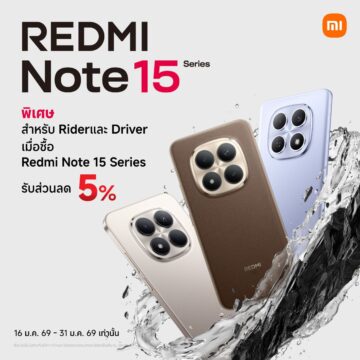 เสียวหมี่เอาใจไรเดอร์ ส่งต่อความแข็งแกร่งระดับไททัน มอบส่วนลดพิเศษ 5%1 เมื่อซื้อREDMI Note 15 Series ตั้งแต่วันนี้ ถึง 31 ม.ค. 2569by BangkokStyle21/01/2026PR News