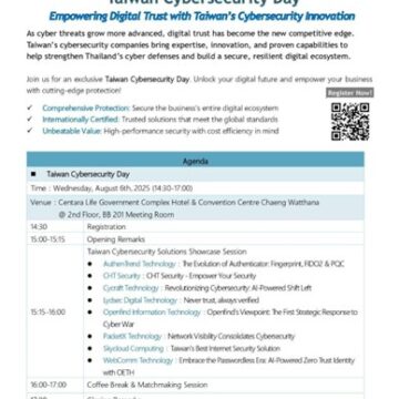 Taiwan Cybersecurity Day Returns to Thailand — Showcasing Solutions for Thai Enterprises29/07/2025PR News