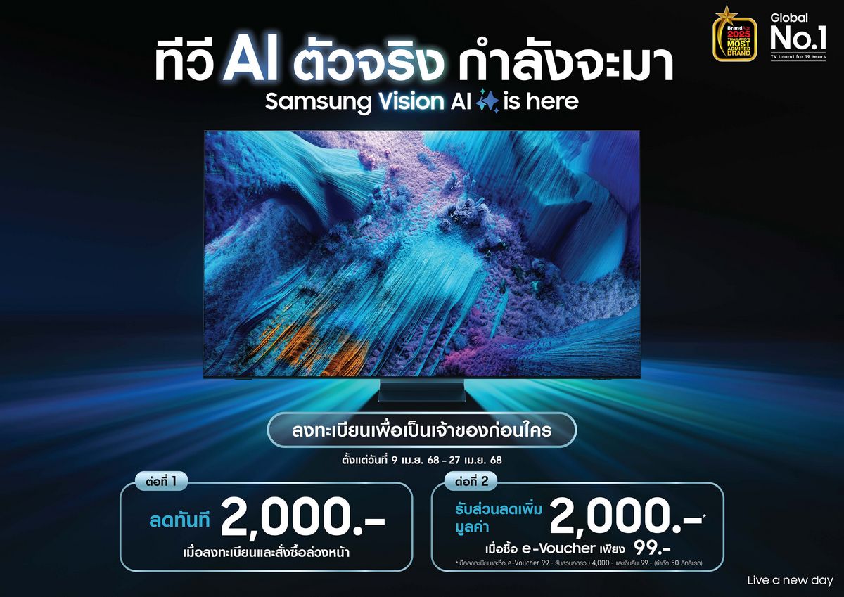 ทีวี AI ตัวจริง กำลังจะมา – Samsung Vision AI is here เป็นเจ้าของ และรับสิทธิพิเศษสุดคุ้มก่อนใครได้แล้ว วันนี้ ถึง 27 เมษายน22/04/2025PR News