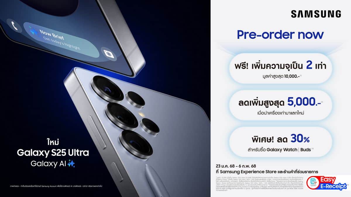 อย่าช้า! โอกาสสุดท้าย Pre-order สั่งจอง Galaxy S25 Series ล่วงหน้า เพื่อรับสิทธิพิเศษมากมาย พร้อมเป็นเจ้าของผู้ช่วยคนใหม่ก่อนใคร06/02/2025PR News