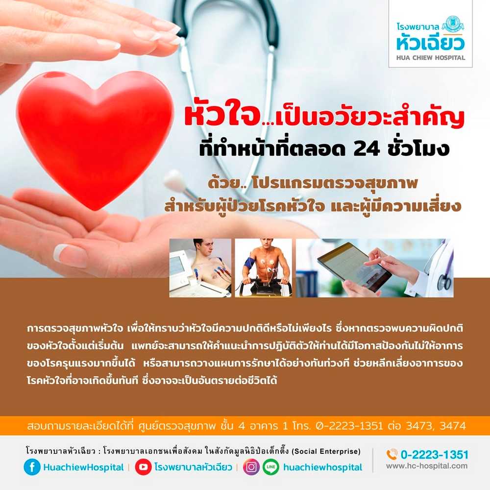 รพ.หัวเฉียว ดูแลหัวใจคุณ ด้วย.. โปรแกรมตรวจสุขภาพสำหรับผู้ป่วยโรคหัวใจ และผู้มีความเสี่ยง28/11/2022PR News