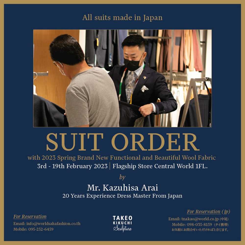 บริการตัดสูทสุด Exclusive จาก Brand TAKEO KIKUCHI กับช่างตัดสูท Dress Master จากโตเกียว ทุกกระบวนการตัดเย็บสูทของท่านส่งตรงจากที่ประเทศญี่ปุ่น03/02/2023PR News