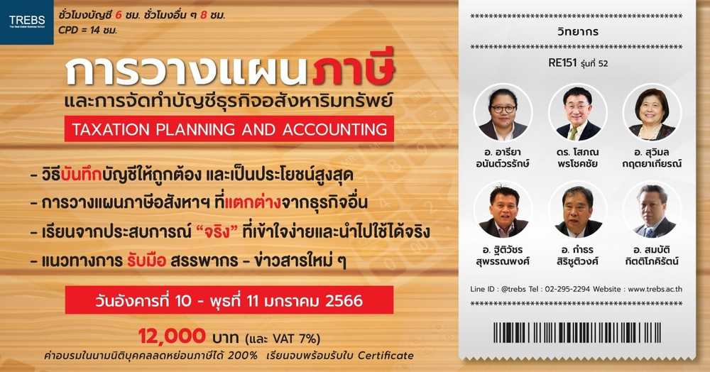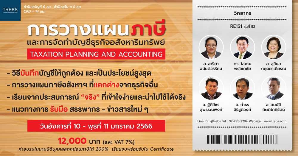 หลักสูตร การวางแผนภาษีและการจัดทำบัญชีธุรกิจอสังหาริมทรัพย์ RE151