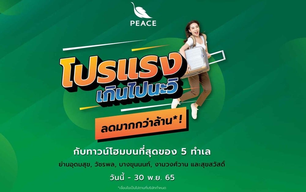 “พีซแอนด์ลีฟวิ่ง” ส่งโปรโมชั่น “โปรแรงเกินไปนะวิ!!” ดันยอดขายปลายปี มอบส่วนลดมากกว่าล้าน* กับ 5 ทาวน์โฮมทำเลทอง ตั้งแต่วันนี้ – 30 พฤศจิกายนนี้ เท่านั้น11/11/2022PR News