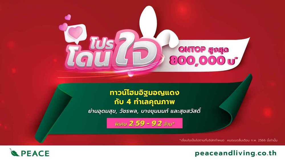 “พีซแอนด์ลีฟวิ่ง” ฉลองเดือนแห่งความรัก ส่ง “โปรโดนใจ” กับ 4 ทาวน์โฮมทำเลทอง เอาใจคนอยากมีบ้าน พร้อมส่วนลดพิเศษสูงสุด 800,000 บาท*10/02/2023PR News