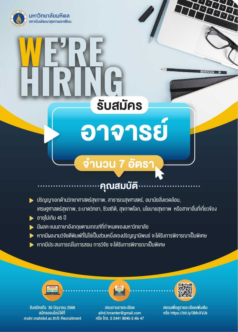 สถาบันพัฒนาสุขภาพอาเซียน มหาวิทยาลัยมหิดล รับสมัคร อาจารย์