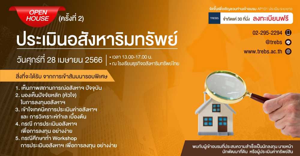 สัมมนาฟรี : เทคนิคการประเมินค่าทรัพย์สินเพื่อการลงทุน (ครั้งที่ 2)