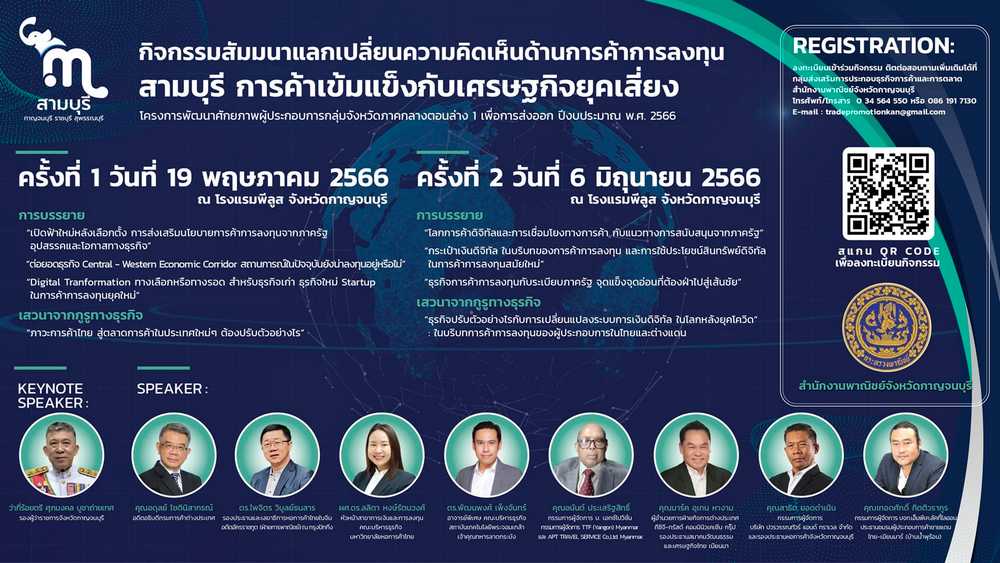 สำนักงานพาณิชย์จังหวัดกาญจนบุรี ขอเชิญร่วมสัมมนาแลกเปลี่ยนความคิดเห็นด้านการค้าการลงทุน04/05/2023PR News