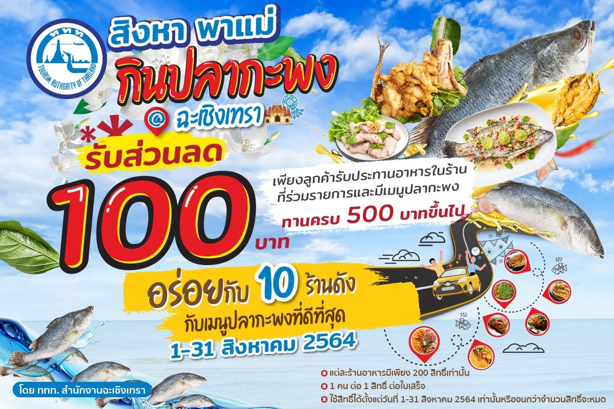 การท่องเที่ยวแห่งประเทศไทย สำนักงานฉะเชิงเทรา ชวนเข้าร่วมกิจกรรม “สิงหา พาแม่กินปลากะพง@ฉะเชิงเทรา” กับ 10 ร้านอาหารชื่อดัง เพียงท่านสั่งอาหารกลับบ้านหรือสั่งจากเดลิเวอรี่ก็ใช้สิทธิ์ได้06/08/2021PR News